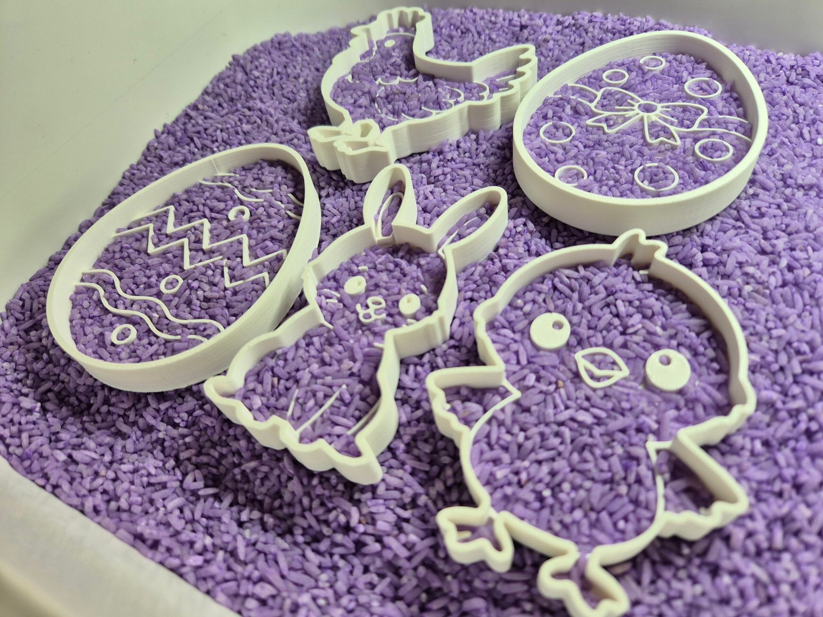 Vulvorm in paasthema, perfect voor sensomotorisch spel met bijvoorbeeld rijst, kinetisch zand of kikkererwten. Ideaal voor kinderen om spelenderwijs te ontdekken, scheppen en vullen.